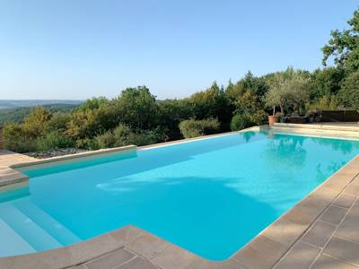Profitez du cadre magnifique à l'extérieur. Dans le magnifique jardin paysager, vous trouverez une piscine à débordement et un bain à remous. Il y a plusieurs terrasses et un barbecue où vous pourrez profiter du paysage avec une belle vue sur la vallée de la Dordogne. Il y a un grand parking pour plusieurs véhicules.