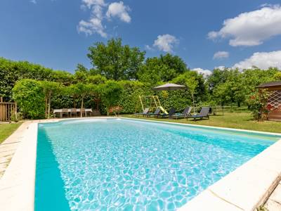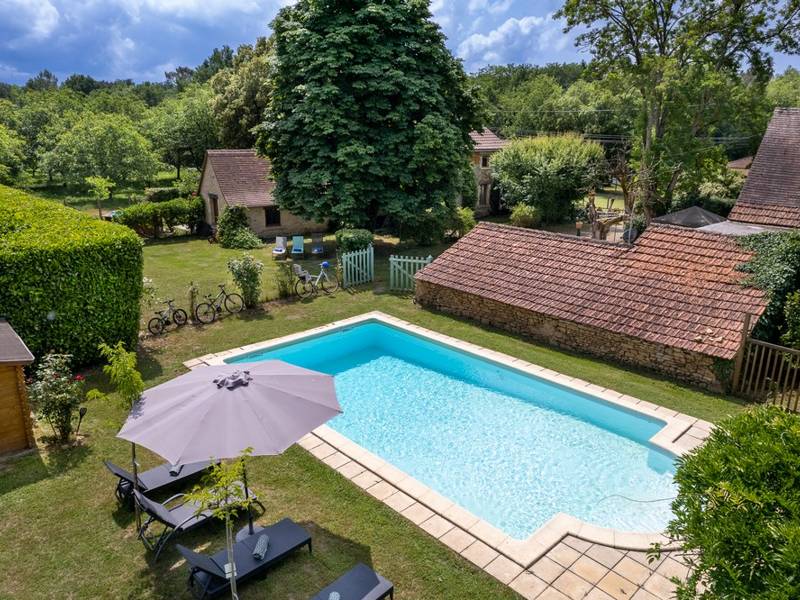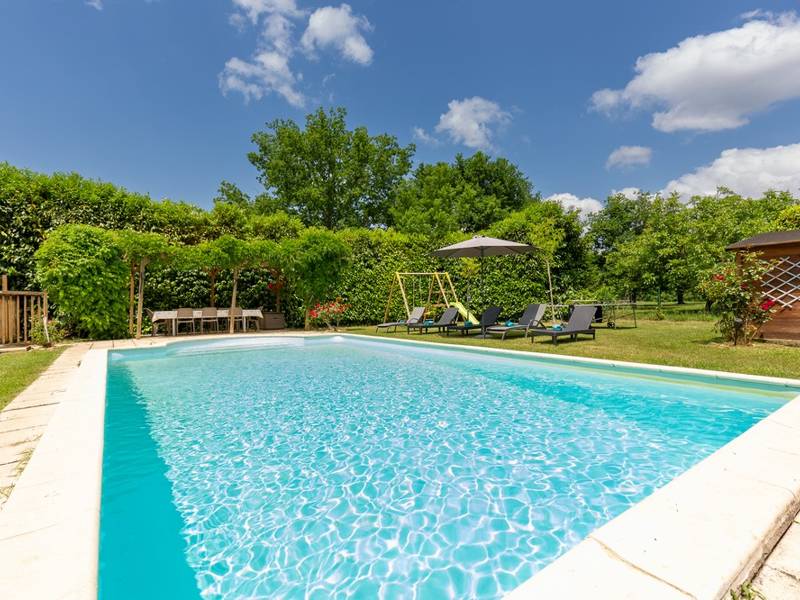 Il y a une grande piscine et trois espaces extérieurs avec vue sur la noyeraie. Vous partagez la piscine avec un autre gîte pour 6P. Nous avons des vélos "non professionnels" à votre disposition pour explorer les nombreux villages de la région.