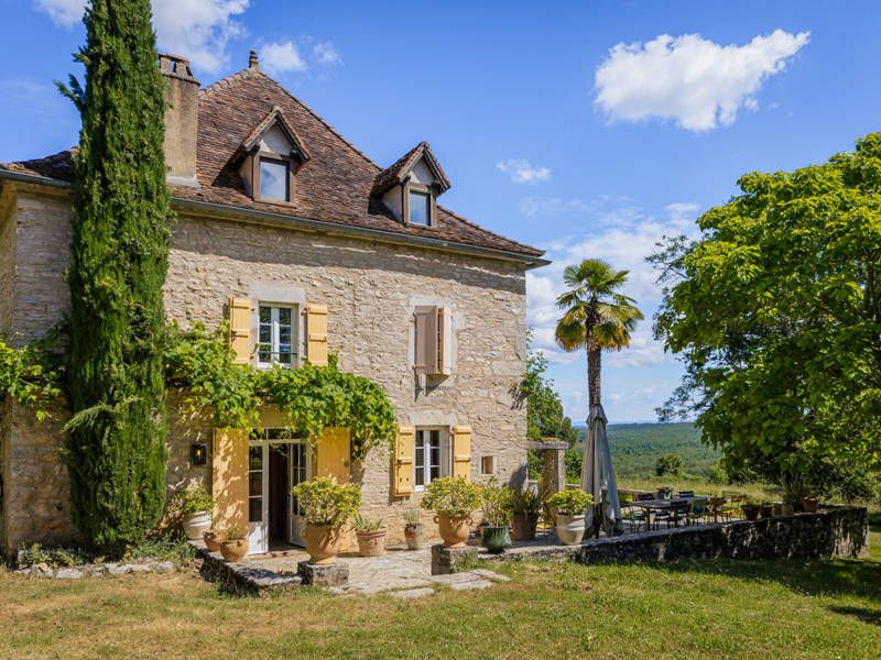 Sur un beau domaine en bordure de la rivière Lot et à proximité d'un joli village et non loin de Saint Cirque laPopie vous trouverez la Maison Amélie. C'est une grande bastide de luxe avec un Pigeonnier, diverses dépendances et une très grande piscine chauffée sur 4 hectares de terrain privé. Grâce à son emplacement en hauteur, il y a de belles vues partout et vous pouvez profiter de la nature en toute tranquillité.