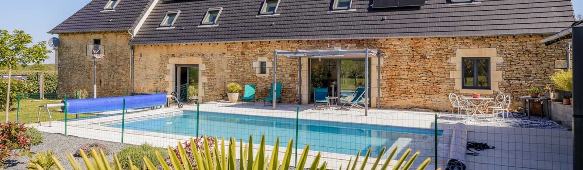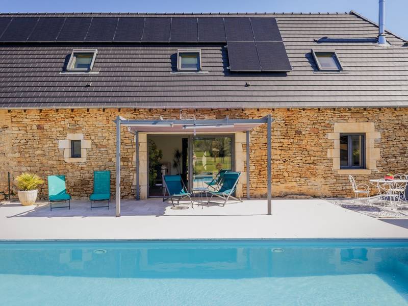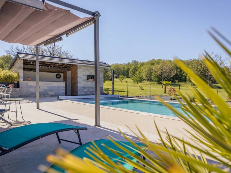 Vous trouverez la Maison Chazal dans la belle partie de la Dordogne. Il s'agit d'une ancienne ferme familiale qui a été entièrement transformée en une belle et attrayante maison de vacances pour 8 personnes. Il y a beaucoup de lumière, une cuisine ouverte et un joli salon et bien sûr la belle piscine privée. Derrière la façade rurale classique vous serez surpris par un intérieur contemporain avec un mobilier moderne.