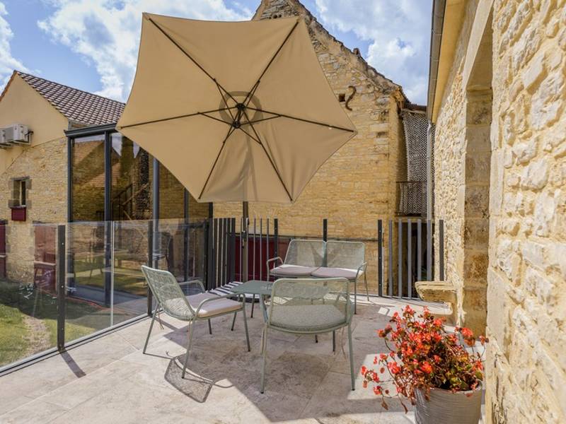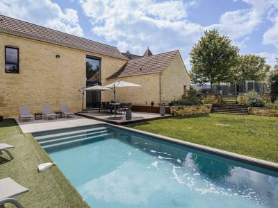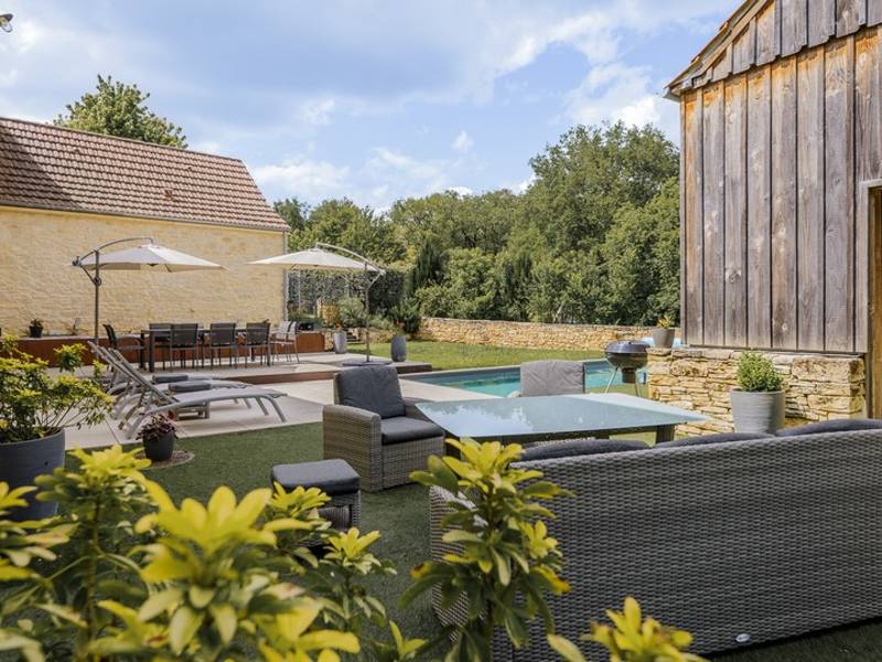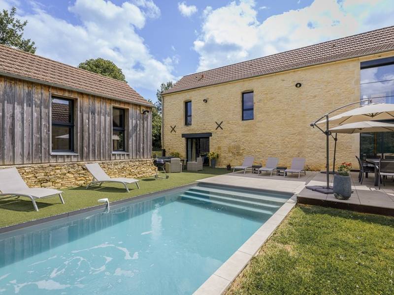 La Maison Degagnac est une maison de vacances idéale à partager avec deux familles, mais aussi une escapade romantique à deux. Le mobilier combine des éléments authentiques tels que du parquet avec de beaux meubles de très bon goût. De chaque coin de cette belle et lumineuse maison, vous avez une vue sur le magnifique jardin et l'espace bien-être. La Maison Degagnac se compose de deux étages, d'une annexe spa, d'un jardin privé et d'une salle de loisirs. Au premier étage (c'est le rez-de-chaussée depuis l'arrivée) se trouve un séjour/cuisine de plus de 60m² avec une vue dégagée sur le jardin, la piscine et le paysage environnant.