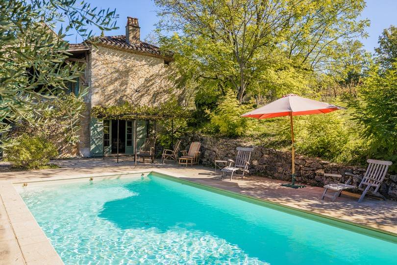 La Maison Lacapelle est une superbe maison de vacances du 19ème siècle. La Maison Lacapelle peut accueillir 10 personnes et est située sur un terrain de 1 ha composé de forêts et de vignes et d'un joli jardin avec plusieurs terrasses, une belle piscine privée et une vue unique sur les vignes et les collines du Lot.