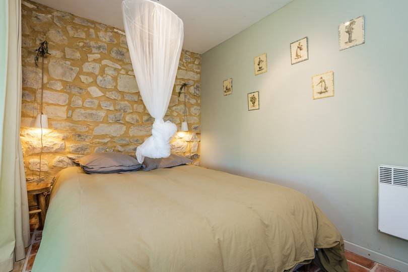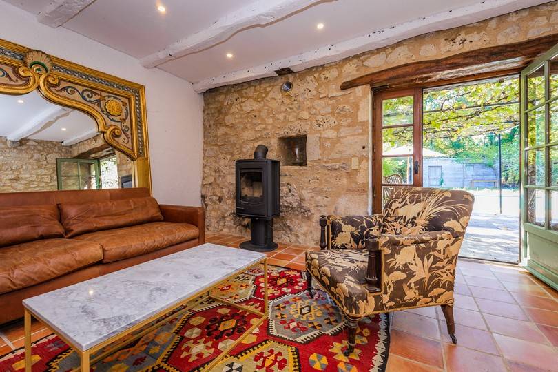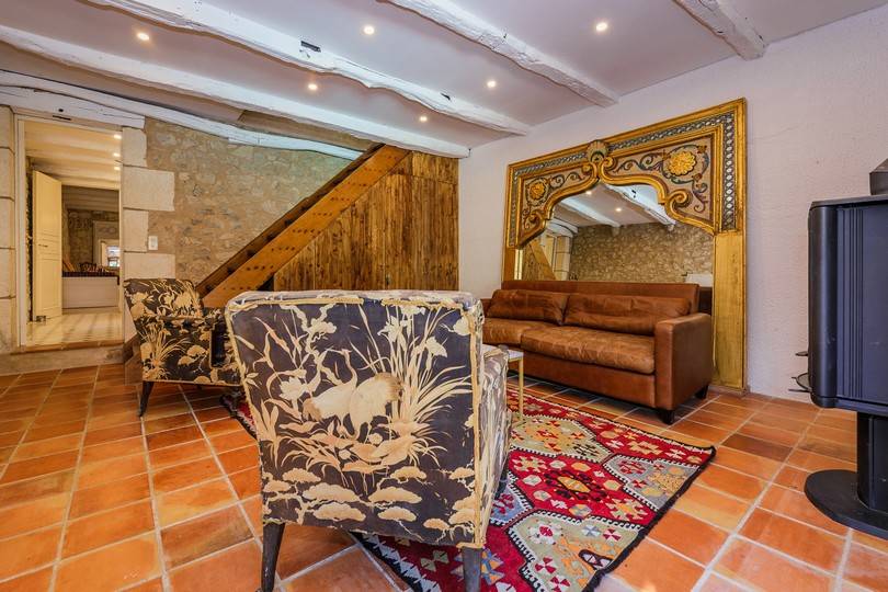 Au rez-de-chaussée (niveau vigne) vous trouverez un grand salon avec un poêle à bois dans la cheminée. Vous avez un accès direct aux terrasses. Il y a une cuisine très bien équipée avec plaque vitrocéramique avec hotte aspirante et aussi depuis la cuisine vous avez accès à la terrasse