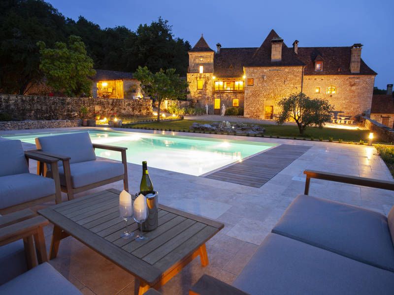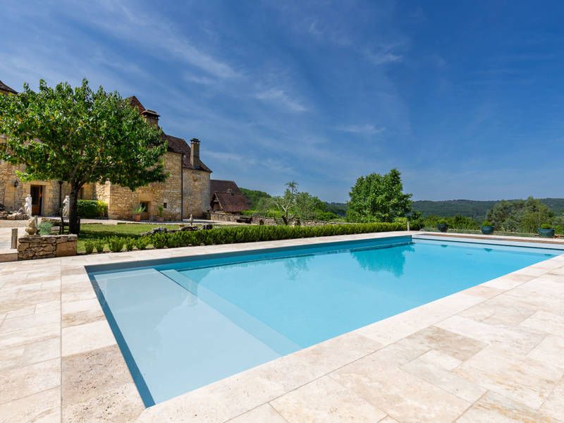 A l'extérieur, il y a une grande piscine d'eau salée privée chauffée de 12 x 5 mètres avec une couverture de sécurité et une terrasse ensoleillée avec vue sur la vallée de la Vézère. La terrasse avec auvent rétractable est située à côté de la cuisine et donne sur la piscine et le jardin. C'est un endroit idéal pour déjeuner ou petit-déjeuner. Les autres tables à manger sont dans le jardin, une terrasse est couverte dans la grange ouverte et l'autre sur la pelouse près de la ruine. La buanderie, avec accès direct à la piscine, abrite une machine à laver, un sèche-linge et surtout un refroidisseur à vin / réfrigérateur à boissons, car après tout vous êtes en vacances. Le jardin d'1 hectare est entièrement sécurisé (pour empêcher la faune). La piscine dispose de nombreuses chaises longues, chaises et parasols, ce qui en fait un endroit idéal pour passer la journée.