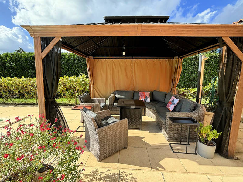 Le grand jardin de plus de 2000m² se compose d'un grand espace plat et gazonné, idéal pour jouer au football et le jardin est doté de hautes haies pour une intimité totale. La belle terrasse donnant sur la piscine permet de garder les enfants sous contrôle tout en dînant à l'extérieur. Le gazebo est idéal pendant les chaudes journées d'été. Le salon d'été très confortable est également protégé du soleil. Avec ses canapés, fauteuils et table basse, c'est l'endroit idéal pour profiter d'une sieste ou pour prendre un verre (ou deux !) de Pécharmant ou de Monbazillac à l'apéritif. Cerise sur le gâteau, la piscine privée de 10x5m, idéale pour passer un agréable après-midi. Le jardin est clôturé et équipé d'une alarme pour une sécurité maximale. Parking à l'avant de la propriété, fermé par un portail, pouvant accueillir jusqu'à trois voitures.