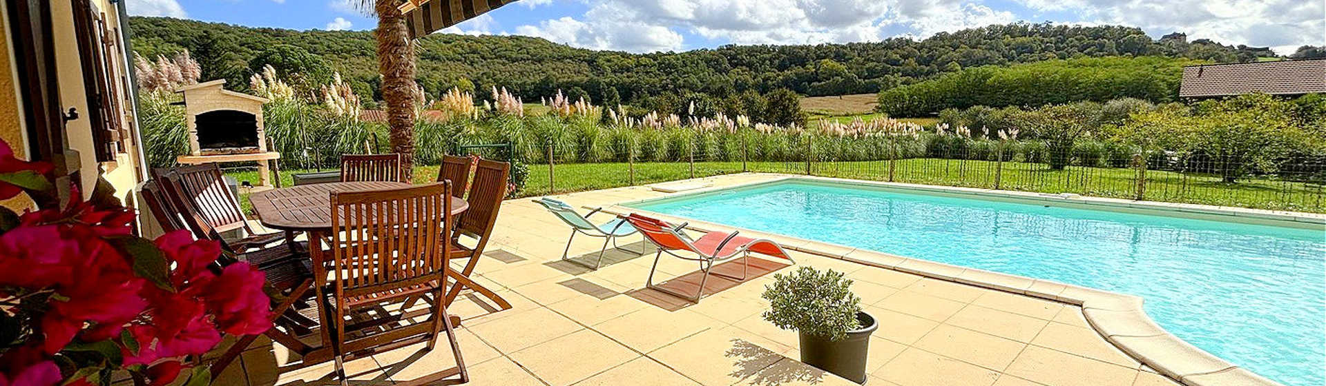 Au retour de vos excursions ou activités quotidiennes dans les environs immédiats, vous profiterez du beau jardin clos, de la grande piscine privée et du salon d'été où vous pourrez partager de merveilleux moments en famille ou entre amis.