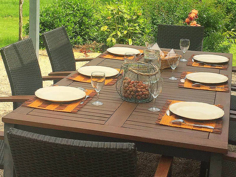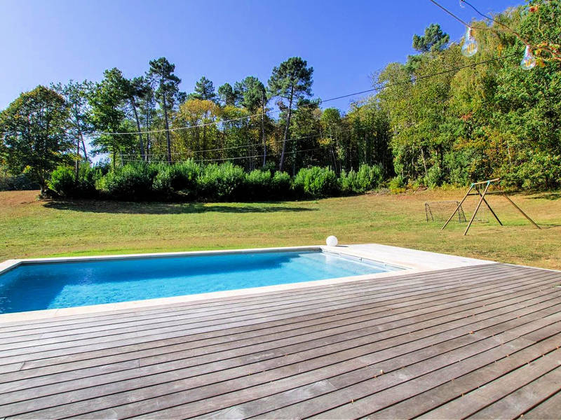 St Laurent la Vallée dispose d'une terrasse située derrière la maison, accessible par le séjour et la cuisine, elle est équipée d'une pergola, d'une table et de chaises et d'un barbecue. La piscine privée (8m x 4m et d'une profondeur de 1m30) est sécurisée par une couverture électrique. Depuis la piscine, vous avez une vue magnifique sur la campagne environnante ! Il y a des chaises longues et des parasols. Le grand jardin de plus de 2000m² est gazonné et est idéal pour les jeux de ballon. Il y a un parking couvert pour deux voitures devant la maison.