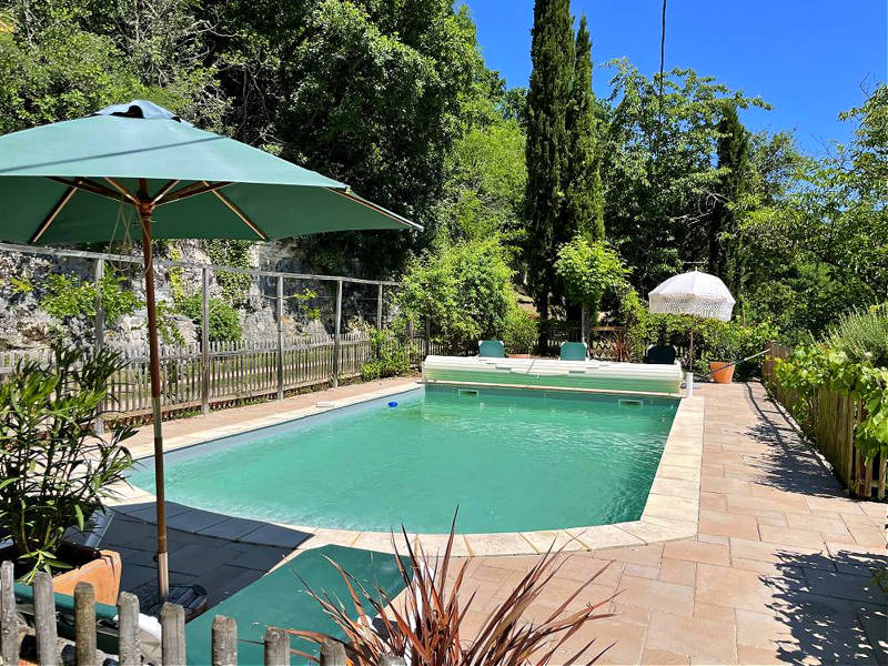 Malgré le fait que l'intérieur de la maison soit bien équipé, vous passerez probablement la plupart de votre temps à l'extérieur. Il y a une grande terrasse équipée d'une table, de chaises et de parasols pour manger en plein air, tout en admirant la vue ! Il y a une belle piscine privée de 10m x 5m avec chaises longues et parasols. Elle est sécurisée par un portail et une alarme. Le grand jardin s'étend sur plusieurs niveaux et se compose d'arbres centenaires et de pelouses. Il y a une place de parking pour 3 voitures