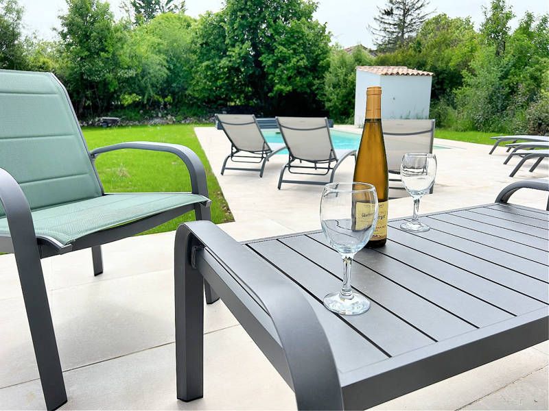 Il y a des chaises longues autour de la belle piscine privée et vous pouvez couvrir la piscine le soir pour que l'eau reste bien chaude. Sur la terrasse il y a une table à manger avec des chaises et dans le jardin vous pourrez profiter de la table de pique-nique sous les arbres ou vous détendre sur un banc au bord du grand jardin. Vous pouvez entrer sur le site par le portail d'entrée et garer votre voiture devant la maison. Le jardin de la Villa Cieurac est entièrement clôturé.