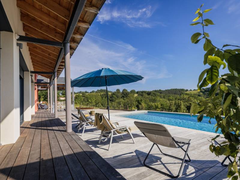 La terrasse ombragée est l'endroit idéal pour profiter des repas en famille avec une plancha à votre disposition. Cette terrasse est très agréable pour dîner avec vue sur le soleil couchant et s'ouvre sur le jardin et la piscine avec de belles vues. Vous profiterez de la piscine et des différents espaces extérieurs, terrain de pétanque, panier de basket.