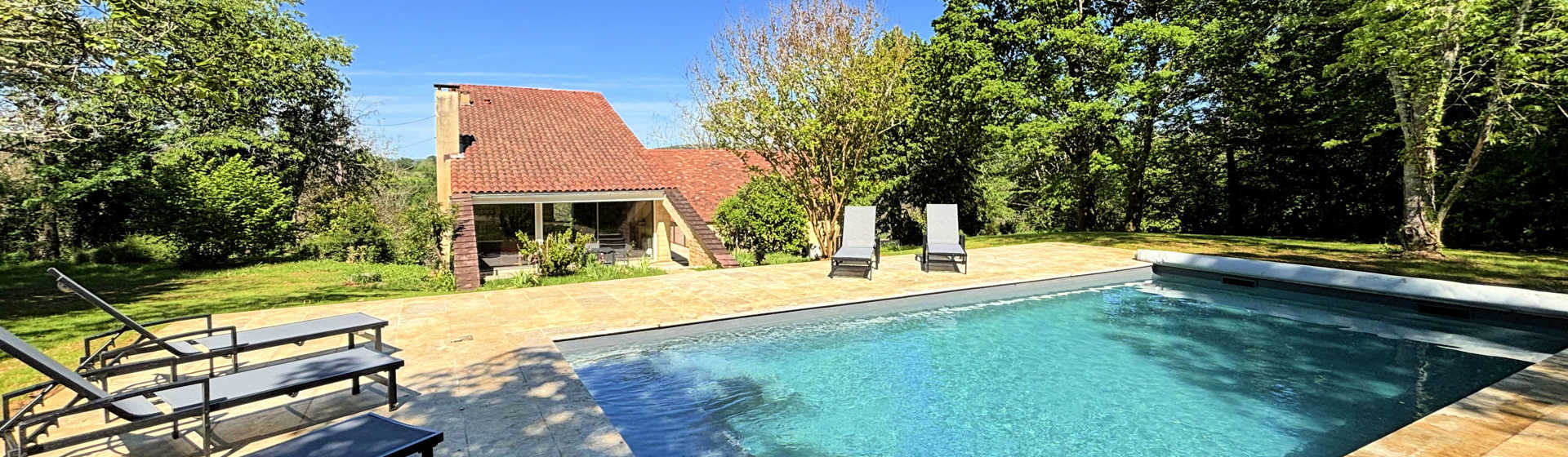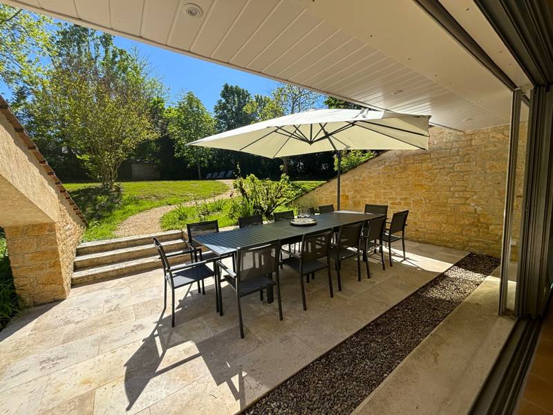 La Villa Siorac est une spacieuse maison d'architecte située dans le village pittoresque de Siorac-en-Périgord, avec commerces et restaurants, au carrefour des vallées de la Dordogne et de la Vézère.
