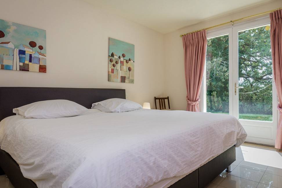 La chambre 1 a un lit double 180 x 200 avec portes-fenêtres donnant sur le jardin et une salle de bain privée