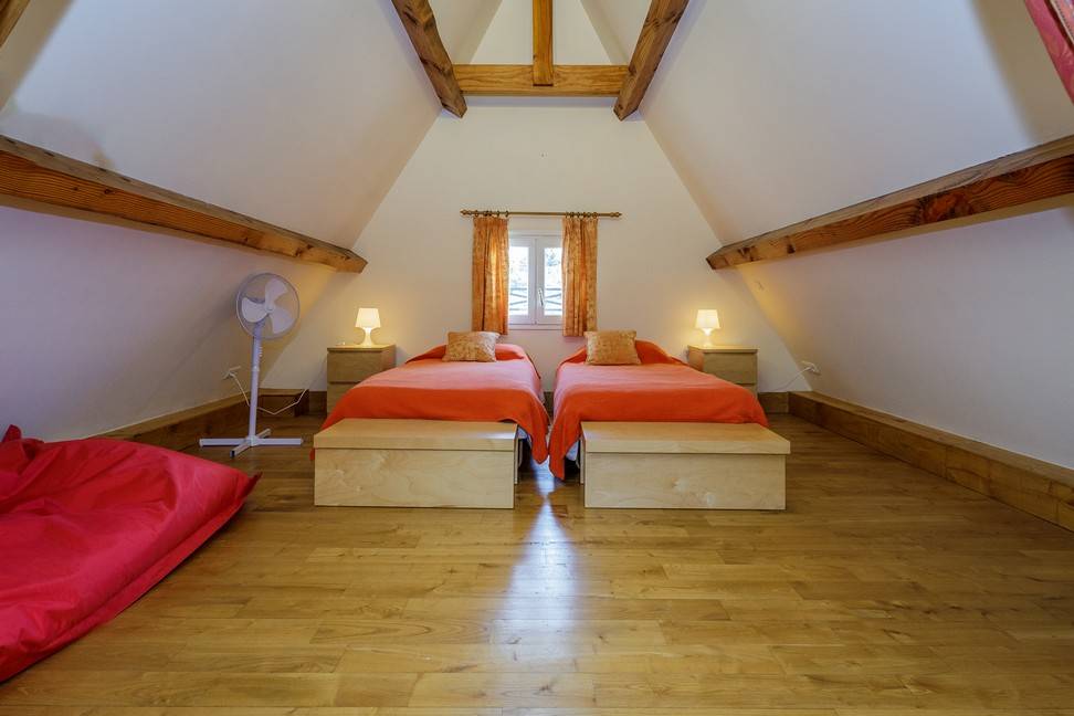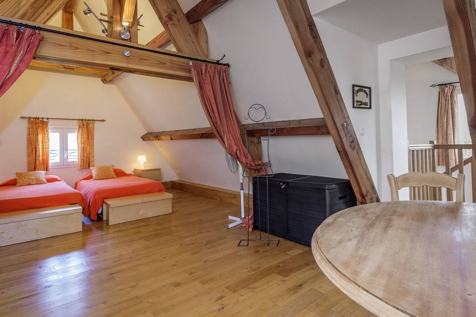 Au deuxième étage, vous trouverez une chambre en mezzanine spacieuse avec 2 lits simple et donnant sur le salon.