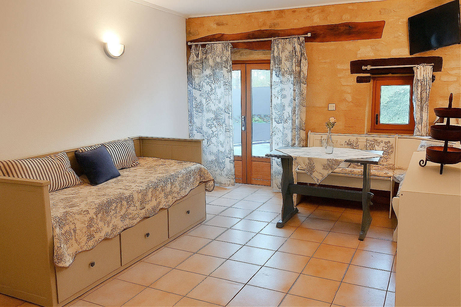 La Clématite is een lichte, knusse studio – perfect voor een rustig verblijf in de Dordogne. De studio bevindt zich in een 150 jaar oude boerenschuur, met zorg verbouwd tot een lichte en comfortabele studio. Ideaal voor een kort verblijf of vakantie in de Dordogne. De studio ligt samen met (La Violette)apart van de andere gîtes.