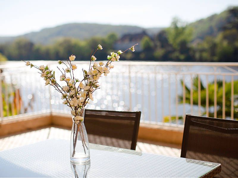 Een luxe badkamer met ligbad, douche en badkamermeubel met wastafel en een apart toilet. Graag het badlinnen zelf meenemen. Via de couloir heeft u toegang tot een heerlijk privé-zonneterras(40m2) met tuinmeubilair direct gelegen aan het zwembad. Vanaf dit terras heeft u een prachtig uitzicht over de Dordogne rivier. Deze vakantiewoning is uitermate geschikt voor 2 volwassenen of 2 volwassenen met 2 kinderen. Op aanvraag zijn babybedjes en kinderstoelen beschikbaar(gratis). Graag wel aangeven bij het reserveren. Een elektrische barbecue is op aanvraag beschikbaar.