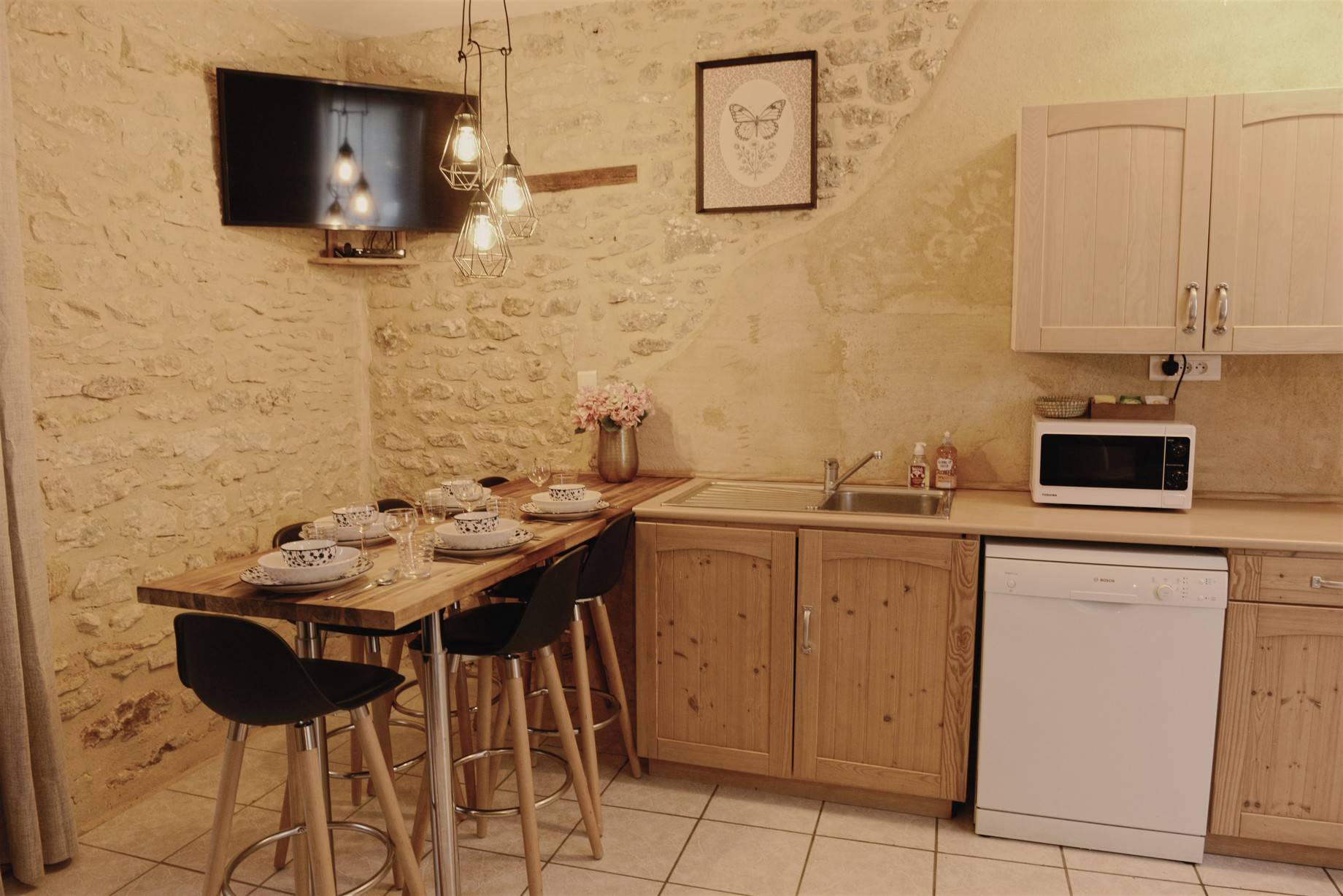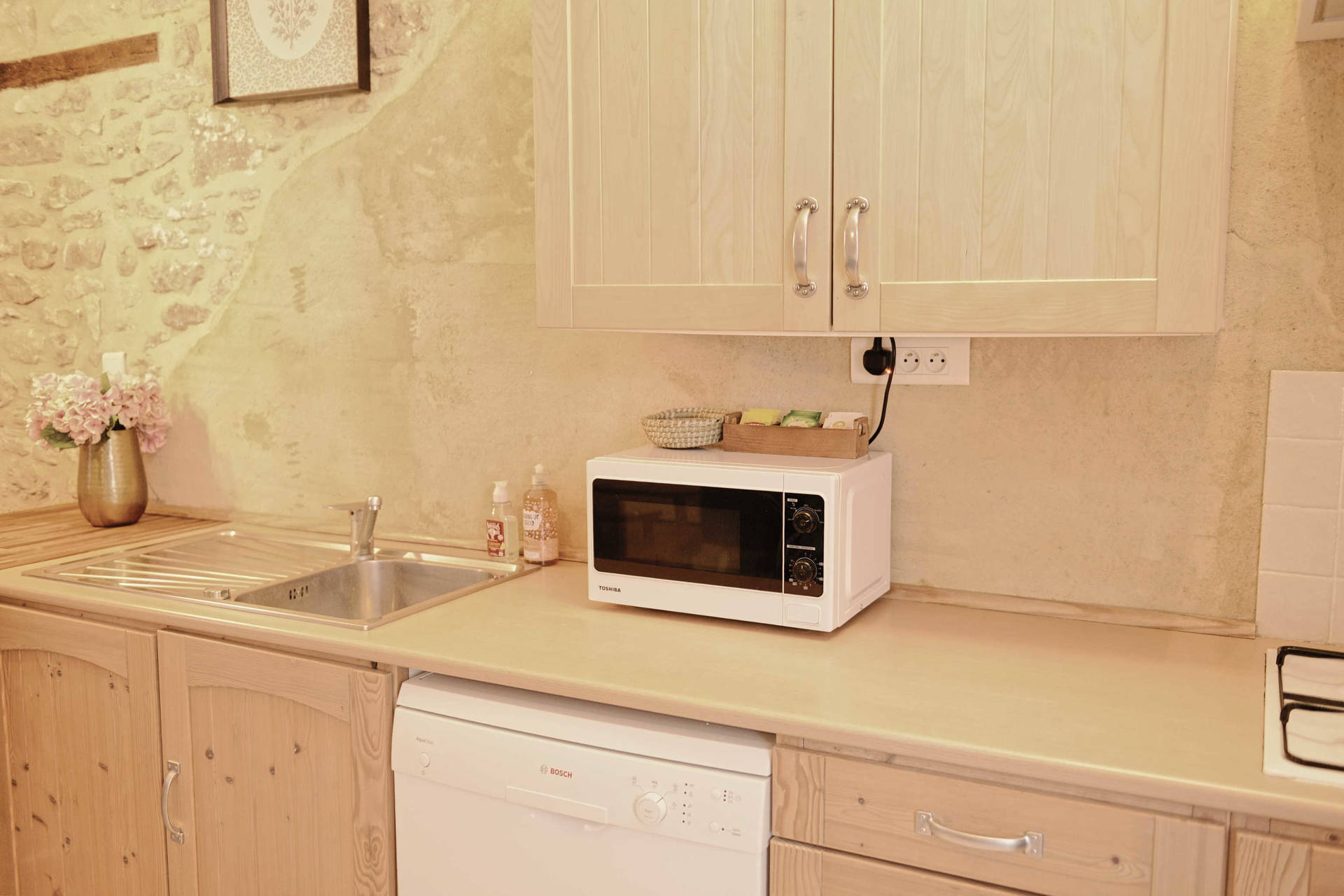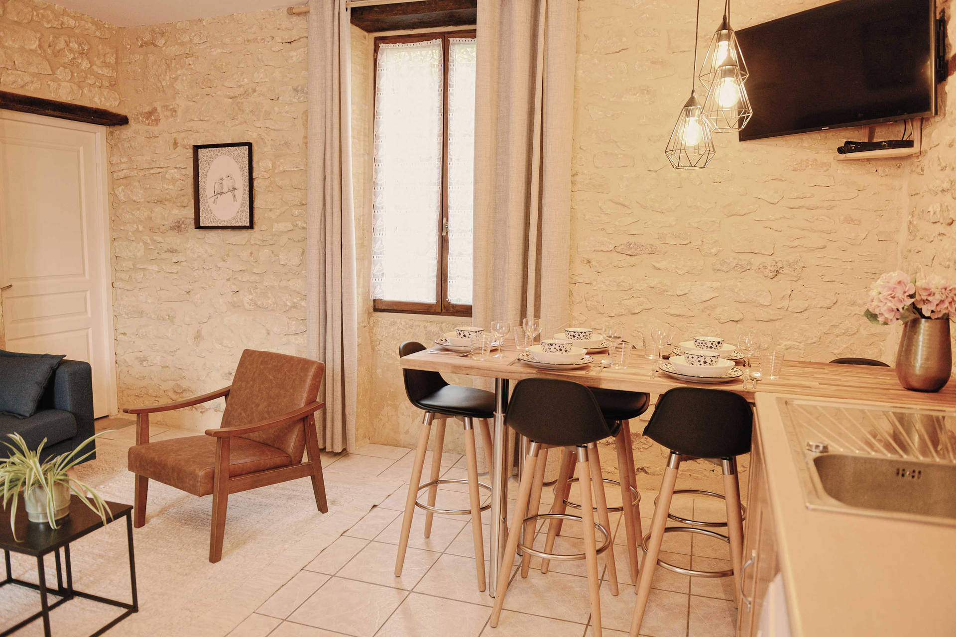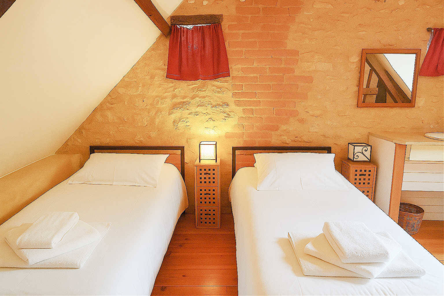 La Campanule is een charmante accommodatie verdeeld over twee verdiepingen. De combinatie van de typische gele kalksteen van de Dordogne, de houten balken en veel natuurlijk licht creëert een warme, rustieke sfeer met modern comfort.
