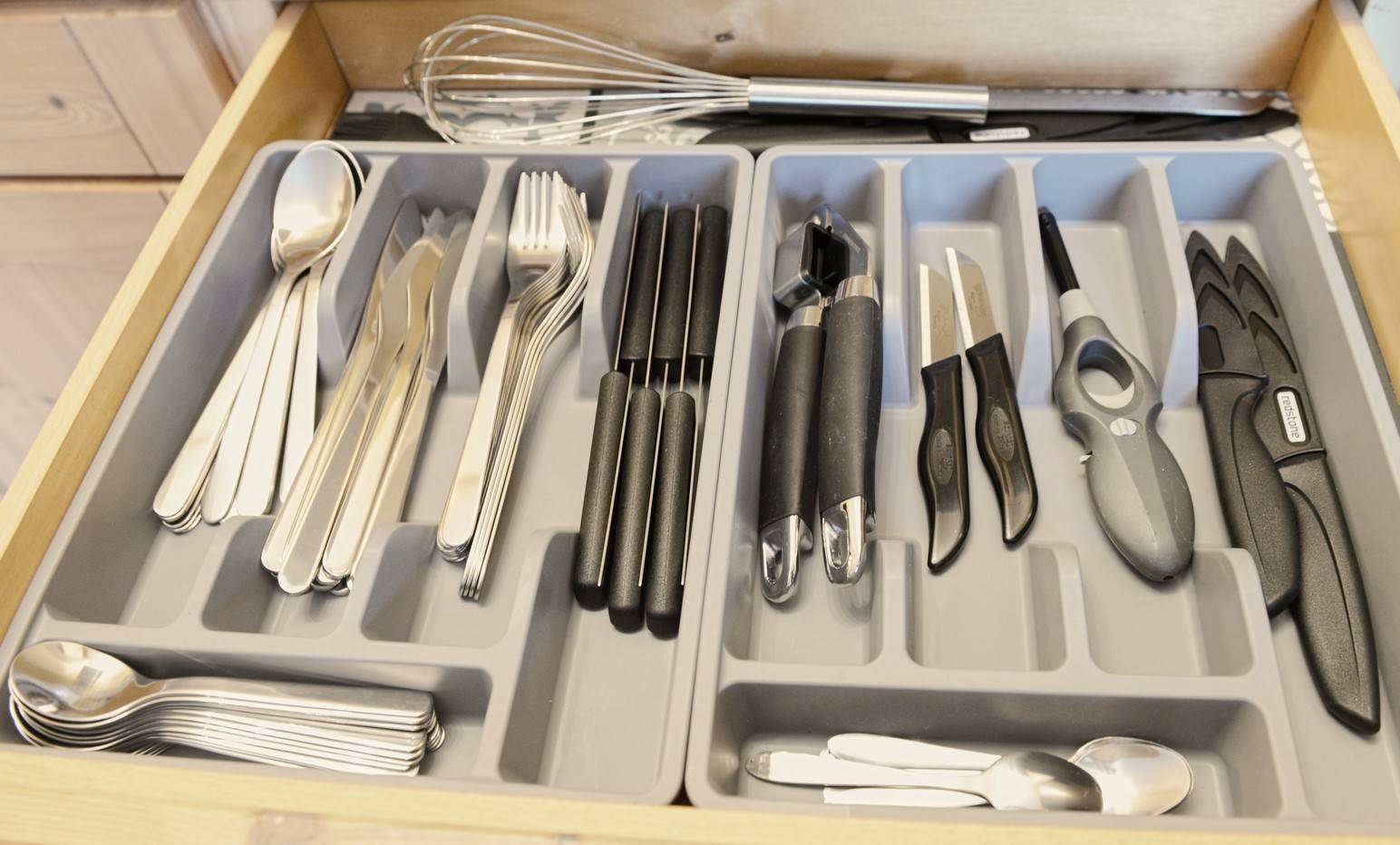 Begane grond: een gezellige woonkamer met zithoek en tv (FR/EN), en een volledig ingerichte keuken met hoge bartafel. Hier bevindt zich ook slaapkamer 1 (zonder airco) met queensize bed (160x200) en een en-suite badkamer met inloopdouche en toilet.