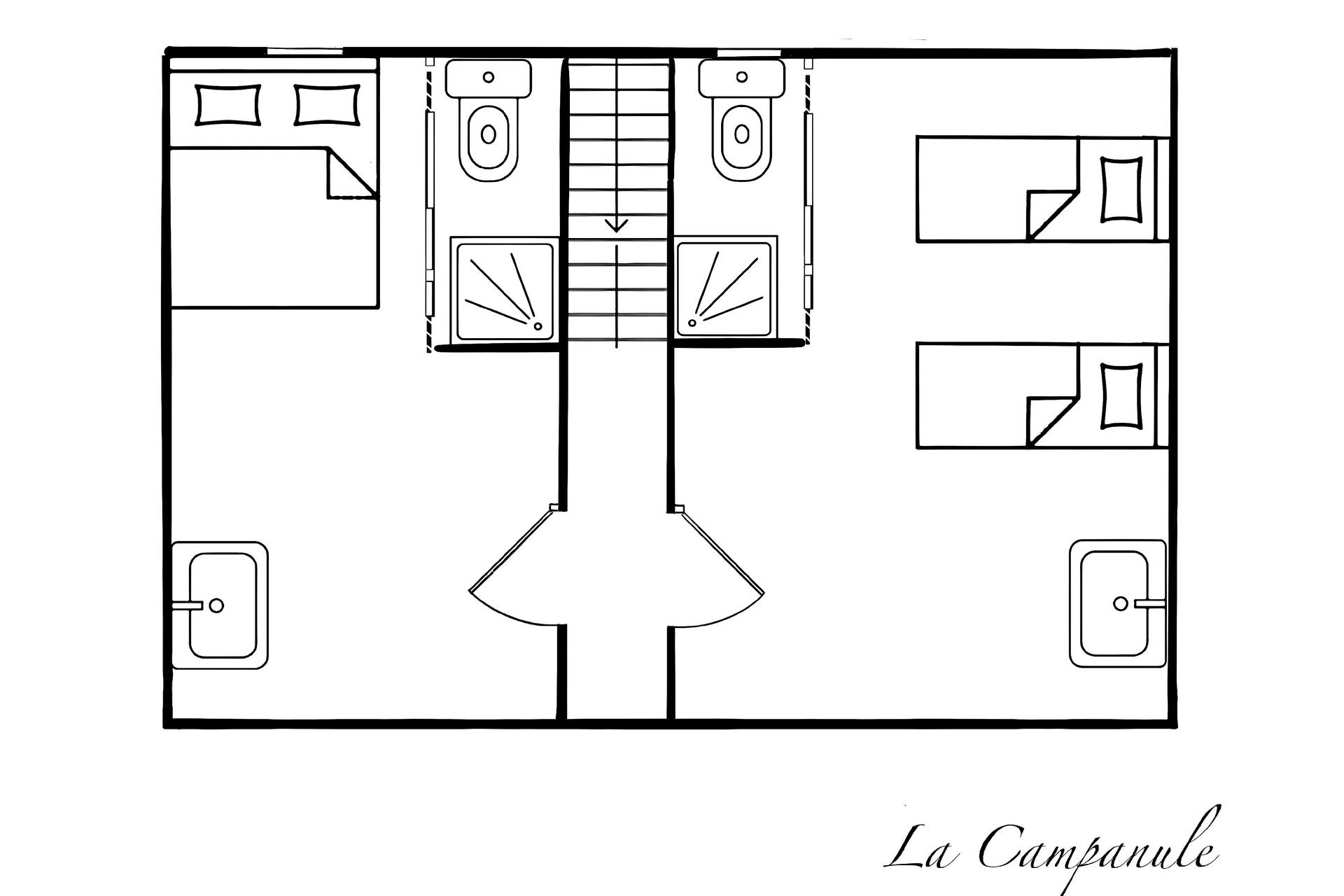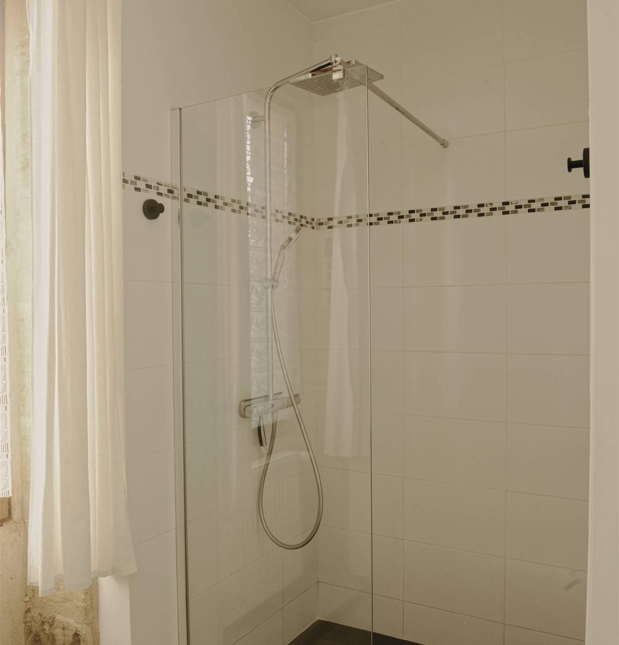 Beide kamers hebben een eigen badkamer met douche en toilet. De wastafels staan, zoals vaak in dit type karakteristieke huizen, in de slaapkamers zelf.