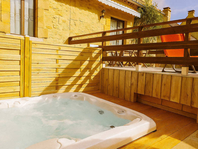 Geniet van het zonnige terras, de rust en de privéjacuzzi – een perfecte plek om volledig tot rust te komen. Het verhoogde terras biedt uitzicht over het zwembad en de boomgaard en vangt de laatste zonnestralen van de dag. Een ideale plek voor lange zomeravonden met een glas wijn. Het terras is ingericht met een grote eettafel, comfortabele stoelen en een gasbarbecue.