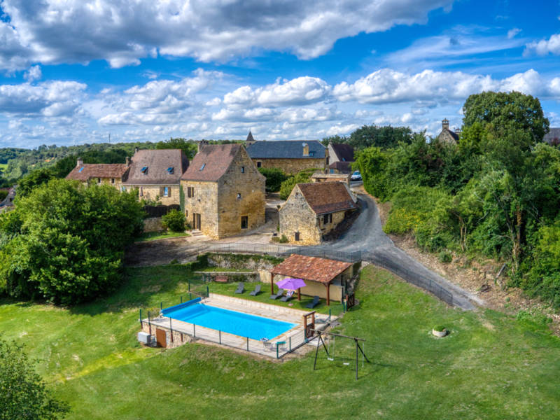 Ferme des Vergades is een prachtige boerderij die is omgebouwd tot een vakantiehuis voor 12 personen in de buurt van Sarlat. De boerderij bestaat uit 3 losse gites *** en heeft een waanzinnig uitzicht vanaf het verwarmde privé zwembad. Ferme des Vergades is gelegen in Saint-Crepin et Carlucet, op 15 km van Sarlat, op 4 km van Salignac (winkels, arts, tandarts, postkantoor, markt op dinsdagochtend), op 6 km van St Genies, op 20 km van Les Eyzies en op 20km van Lascaux.