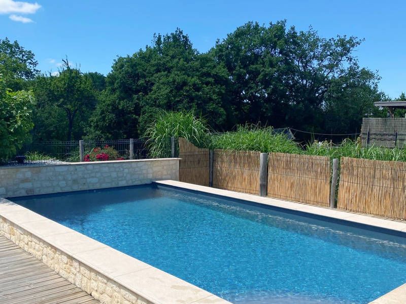Een privé zwembad 8 x 4 meter met natuurlijk zoutwater. Het zwembad is volledig omheind en het terras heeft voldoende zonnestoelen en parasols. Huisdieren kunnen mee met hun baasje op vakantie (maximum 2 op aanvraag). Er is voldoende ruimte voor de kinderen. Achter het natuurhuis is een bos, schommel en glijbaantje voor de allerkleinsten.