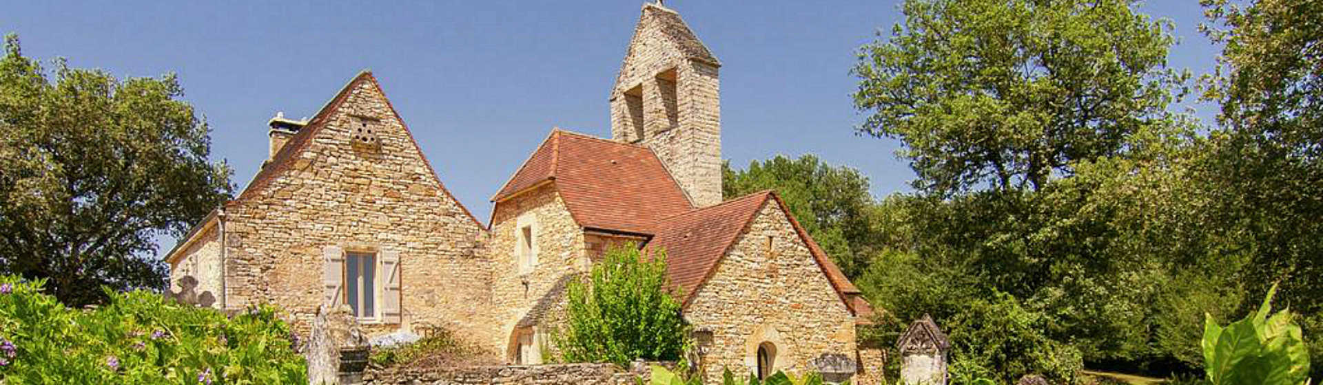 De kerk ligt in het plaatsje St. Aubin de Nabirat tussen Domme, Salviac en Gourdon (aan de D46) in het prachtige departement Dordogne. Op 5 km afstand ligt de rivier Dordogne en in de omgeving zijn vele bezienswaardigheden zoals de plaatsen Domme, Beynac, Castelnaud, Sarlat, Gourdon met diverse kastelen, grotten en kerken. Het is een prachtig gebied om te wandelen, fietsen en kanoën. Boodschappen kunt u doen in Gourdon dat op ongeveer 10 km afstand ligt.