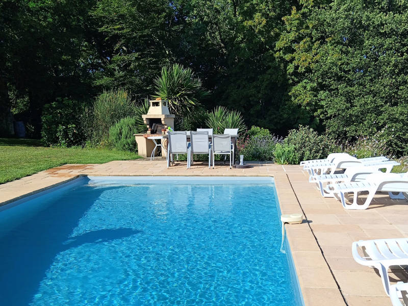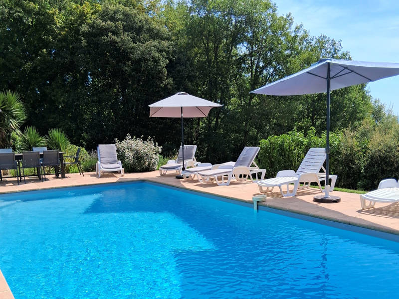 Het ruime terrein rondom Le Pech Long ademt rust en natuur. U beschikt over een prachtige tuin met een groot privé zoutwaterzwembad (10 x 5,5 m) waar u in alle privacy kunt genieten van de zon. Rondom het zwembad staan ligstoelen, parasols, een barbecue en comfortabel tuinmeubilair. Bij het zwembad is een buitendouche aanwezig. Toegang tot het zwembad gaat eenvoudig met een trap in het bad, aflopende diepte, van 1.50 tot 2.30 diep.