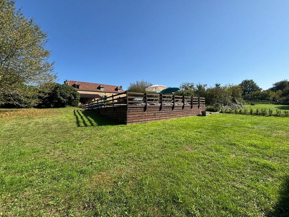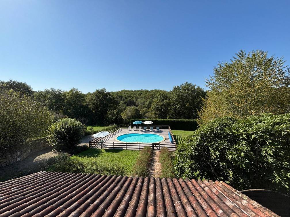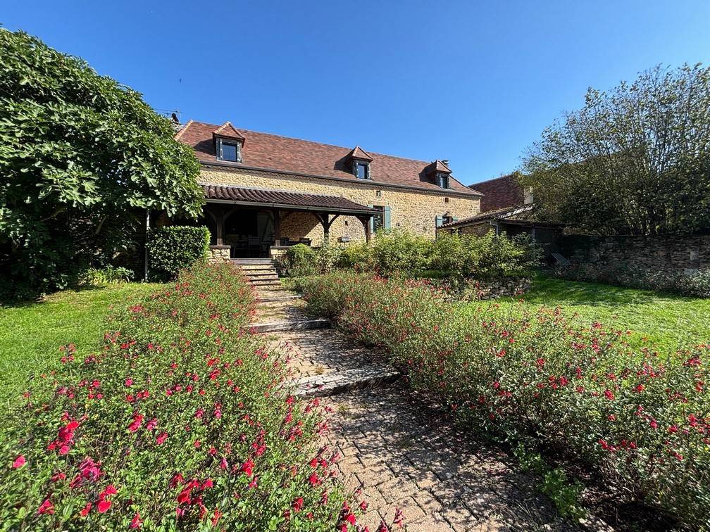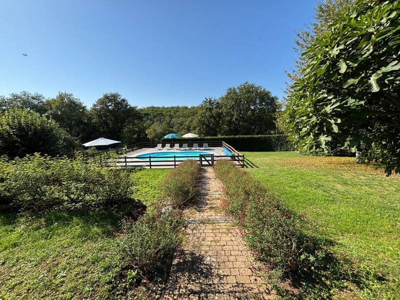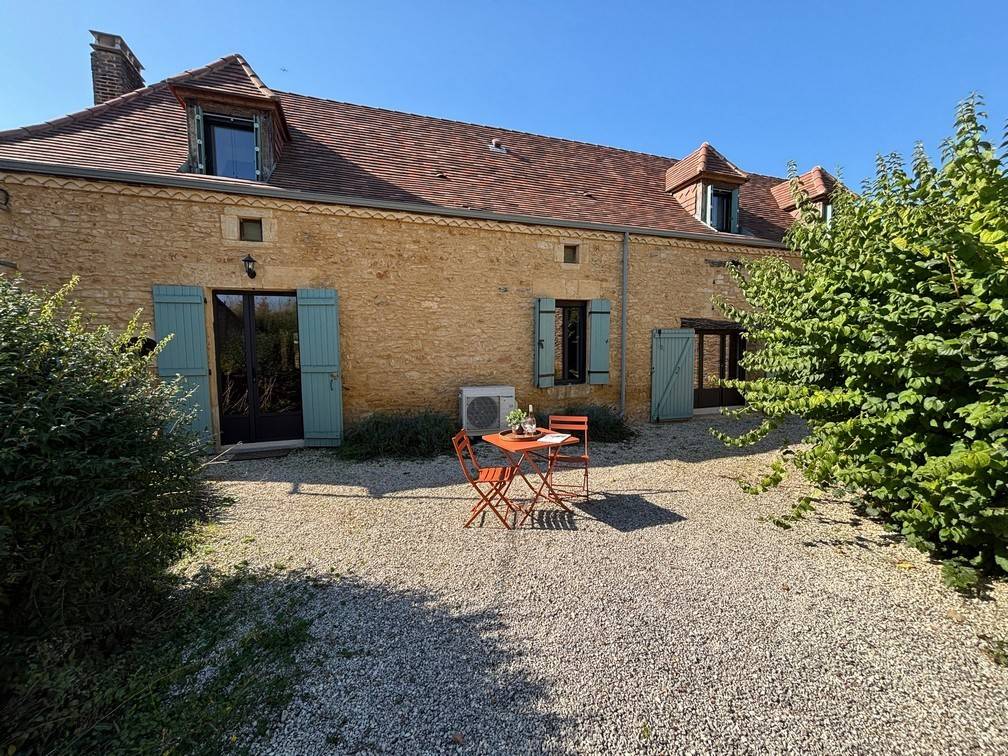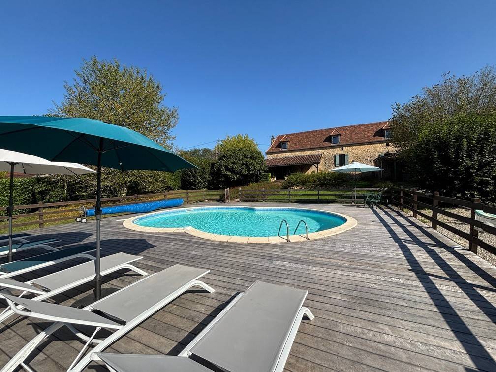 Vanuit de woonkamer geven de openslaande deuren toegang tot het overdekte terras met grote tafel. Een mooi onderhouden tuin 1000m² heeft een grasveld en bomen. De tuin is volledig omheind met een stenen muur en bosschages. Het prive zwembad is verwarmd en er zijn voldoende ligbedden waar u heerlijk kunt genieten van de Dordogne zon.