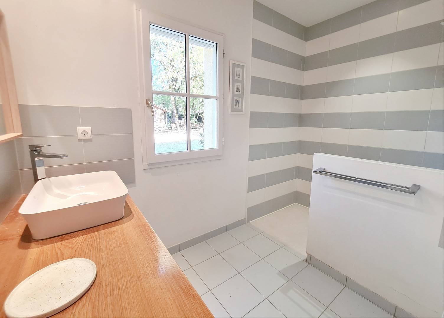 Villa Bouzic ligt in een grote, omringende tuin met voldoende ruimte voor spel en ontspanning. Het privézwembad (8 x 4 meter) met zoutwater is beveiligd met een onderwateralarm voor de veiligheid van kinderen. Rondom het zwembad staan ligstoelen en parasols. Er is een privéparkeerplaats voor drie auto’s.