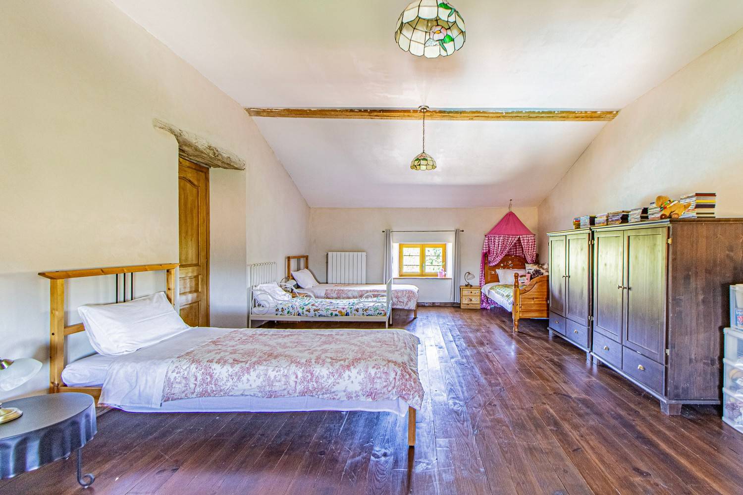 Slaapkamer 5: familiekamer met drie eenpersoonsbedden en kinderbed