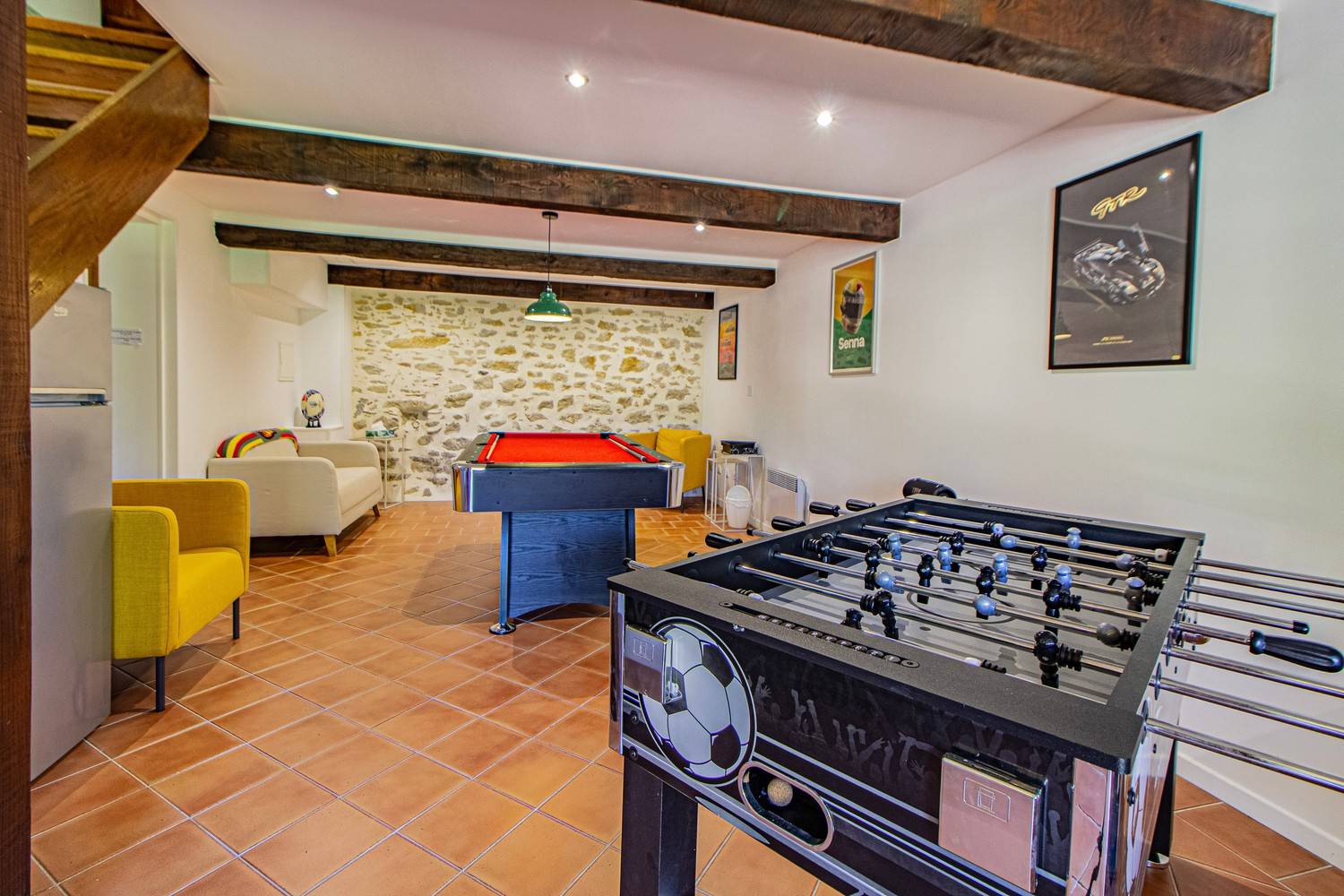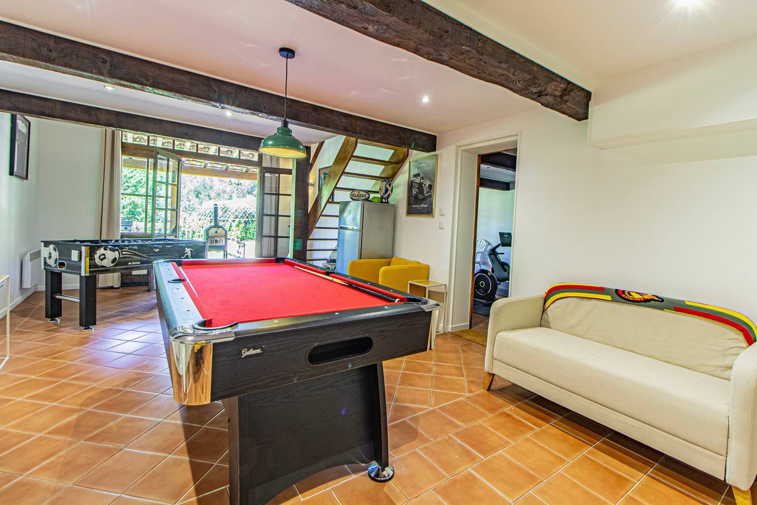 Speelkamer met pooltafel en tafelvoetbal