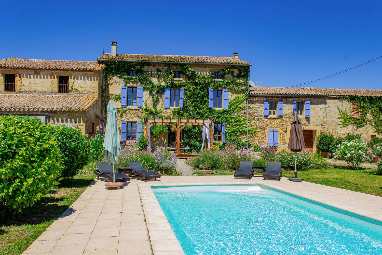 Met maar liefst 450 m² woonoppervlak, 7 slaapkamers, 5 badkamers, een privézwembad, fitnessruimte en uitgebreide recreatiemogelijkheden is dit de ideale villa voor families, vriendengroepen of een meerdaagse retraite in Zuid-Frankrijk.