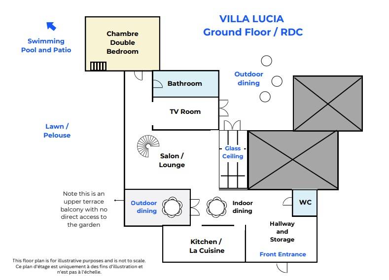 Daarnaast is er een gastentoilet, wasmachine, strijkfaciliteiten, wifi in de hele villa en airconditioning in de woonruimtes en twee slaapkamers op de 1e verdieping.