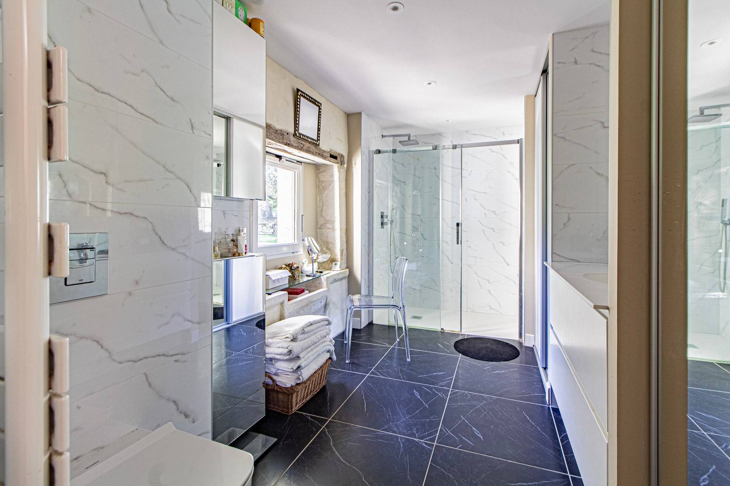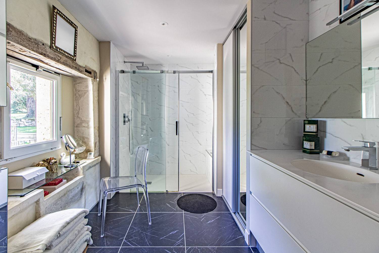 Er is een extra tv-kamer met flatscreen (Franse en Engelse zenders) en dvd-speler. Op de mezzanine bevindt zich een rustige werkplek met bureau – ideaal voor wie tussendoor wil werken.